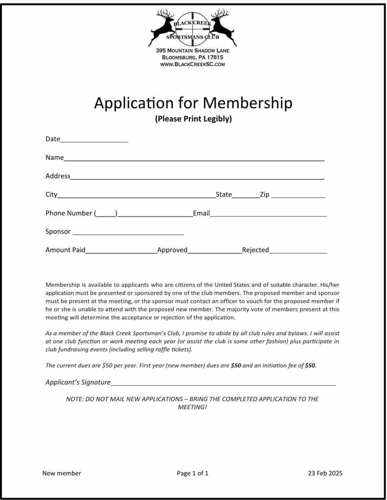 If you are interested in becoming a member of the Black Creek Sportsman’s Club, please download and fill out the PDF application form below.